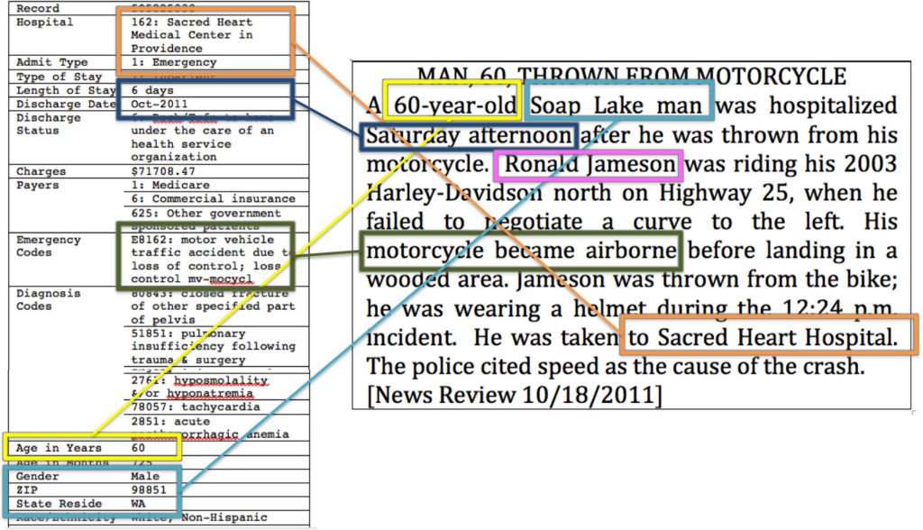 Given that newspapers are in the business of informing the public of current events so they did publish specific details like name, age, treatment hospital, and other information that could be matched to the hospital data.